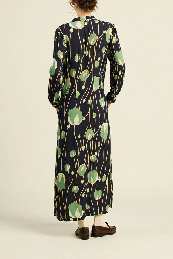 The Harper Dress is a vintage-inspired shirt dress with a tailored pleated waist, full-button front and elongating midi hemline. Featuring hidden side pockets and bracelet length sleeves.