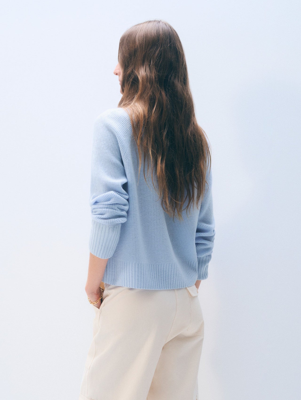 A luxury crewneck you'll reach for daily. Knit with pure cashmere in a waffle stitch, the Pale Mist Sweatshirt offers exceptional softness and rich texture. This easy fit is refined with raglan sleeves and subtle back-neck tacking.